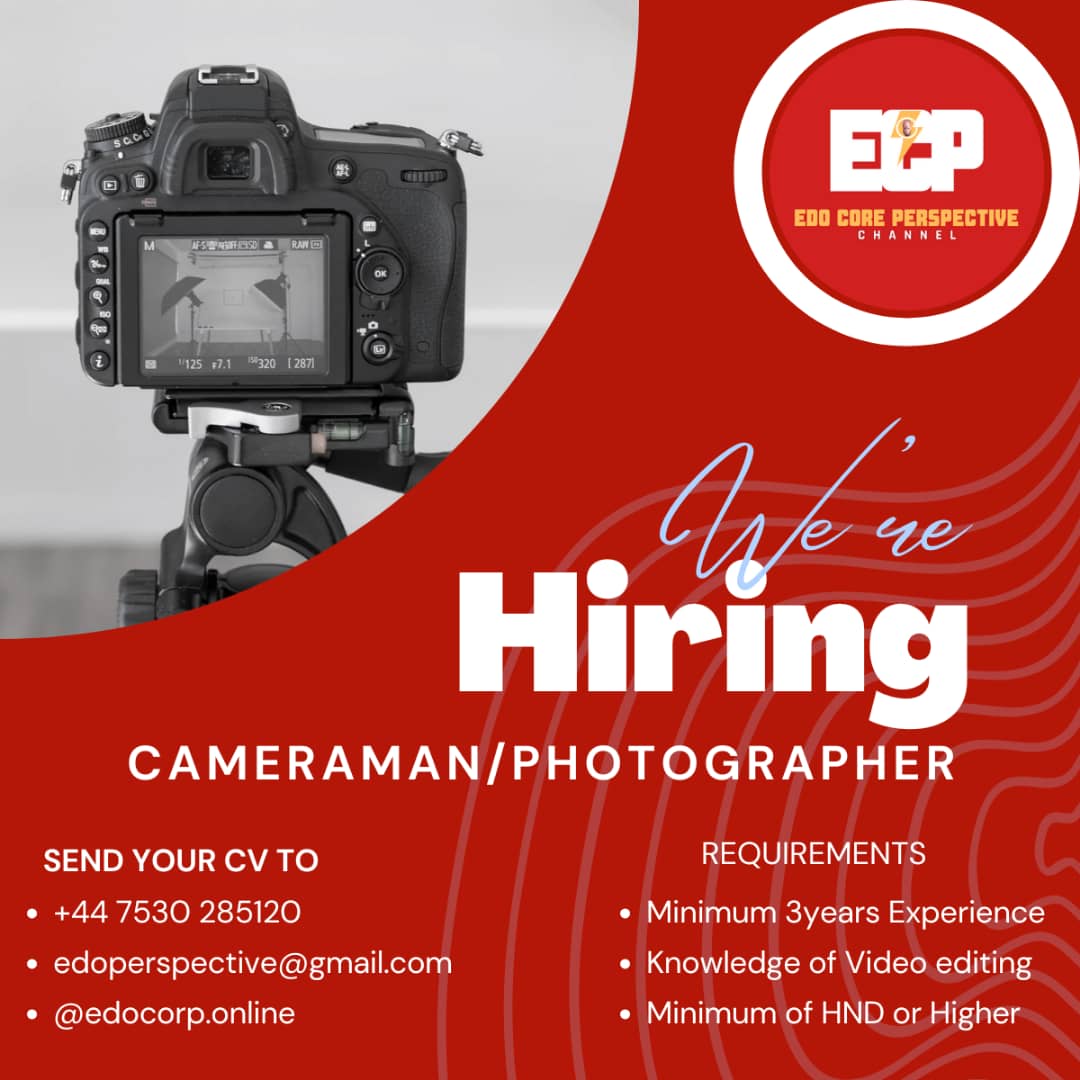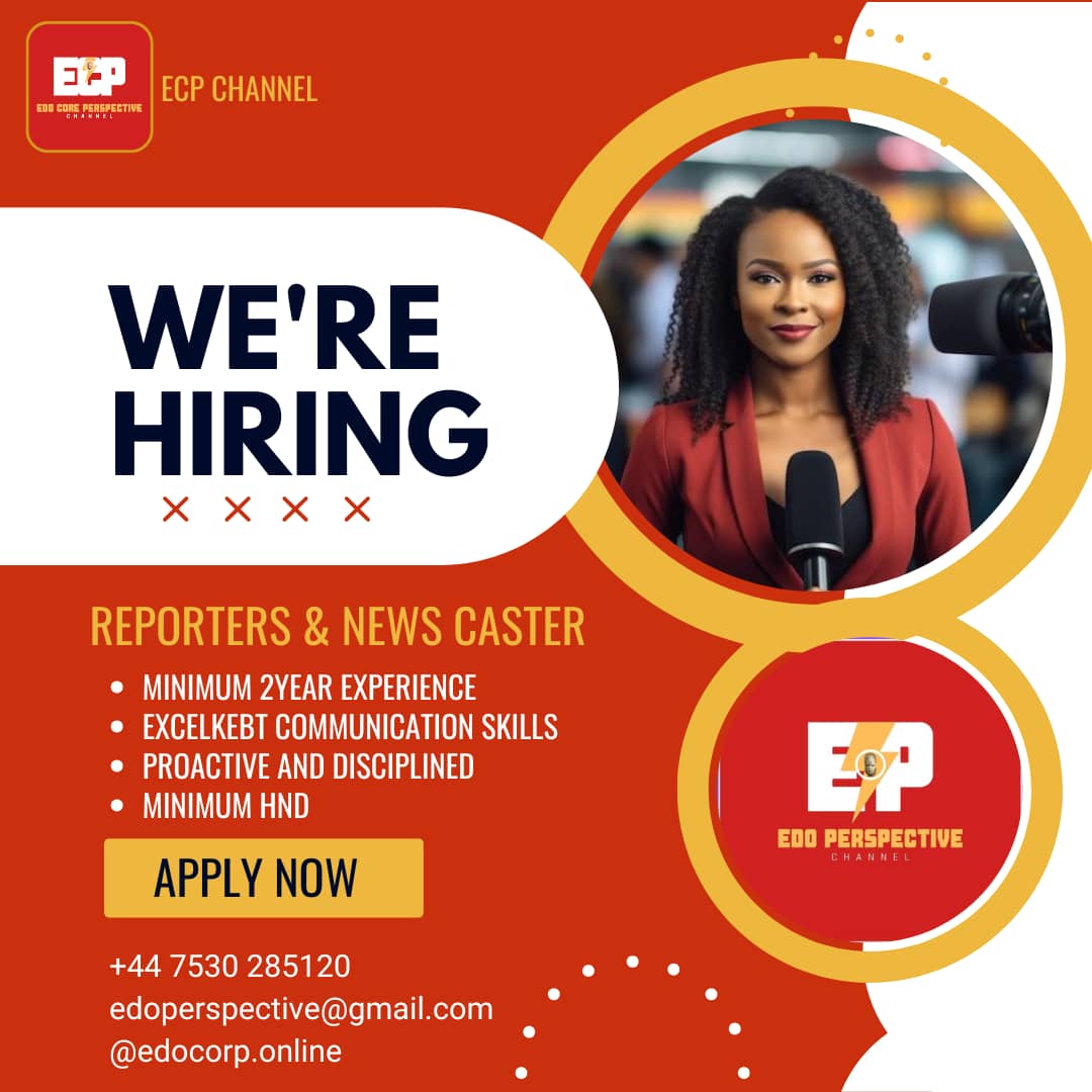 Edo Core Perspective Channel (ECP) is hiring passionate and talented individuals to join our dynamic team. If you're ready to be part of a media organization committed to delivering The Truth and Nothing But the Truth, check out the opportunities below!